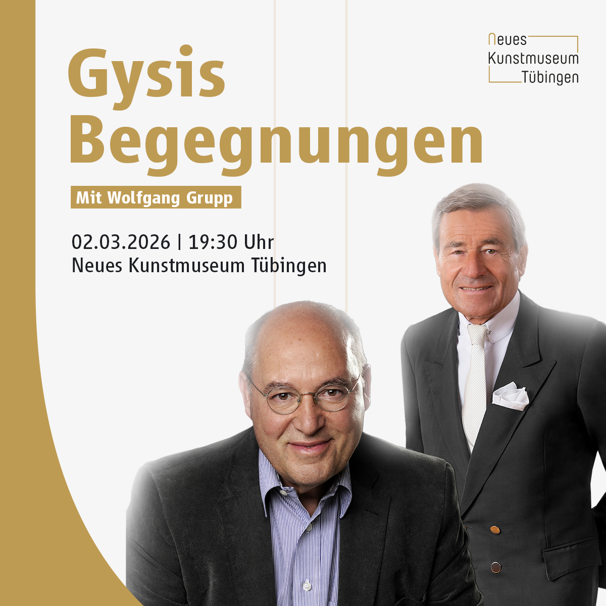 Gregor Gysi trifft ab Sommer 2025 im Neuen Kunstmuseum Menschen, die etwas zu sagen und etwas erlebt haben: Prominente Zeitzeugen des öffentlichen Lebens aus Medien, Kultur, Politik, Show, Musik, Sport und Gesellschaft.