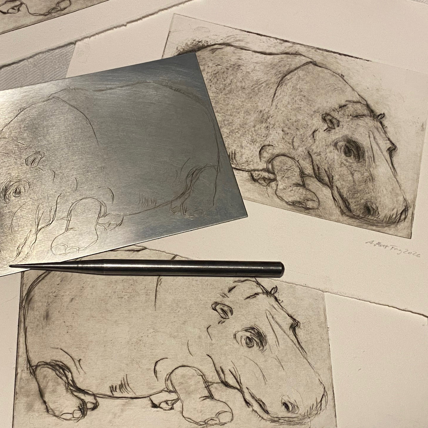 In diesem Workshop lernen Sie die Grundlagen der Kaltnadelradierung kennen – von der Bearbeitung der Druckplatte über das Einfärben bis hin zum fachgerechten Druck auf einer professionellen Tiefdruckpresse.